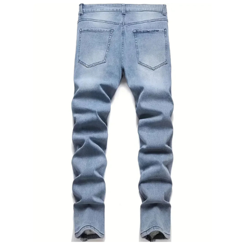 The Men’s Streetwear Style Ripped Jeans are a bold and trendy addition to any modern wardrobe. Designed with a distressed, ripped aesthetic, these jeans combine edgy street style with comfort and durability. Made from high-quality denim, they offer a slim yet relaxed fit, making them perfect for casual outings, urban fashion looks, or everyday wear.